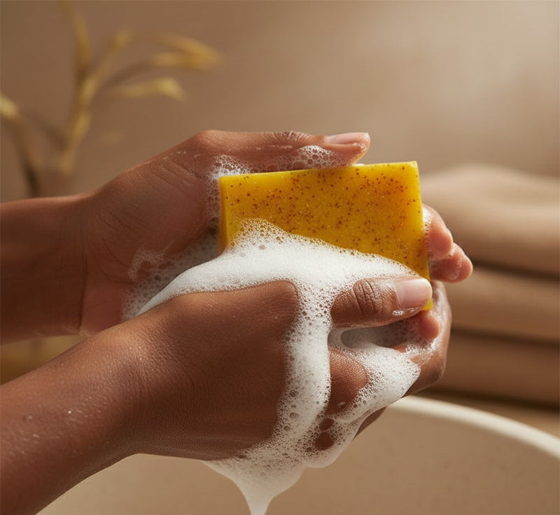 Lather on wet skin, massage for 20–30 seconds, then rinse and pat dry.